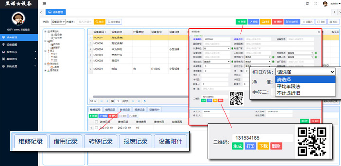 4.設備信息折舊方法支持平均年限法、年數總和法、雙倍余額遞減法、手動核算折舊及不計提折舊法。 可為企業的固定資產選擇最佳折舊法;