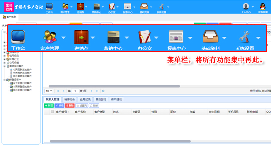 2.支持客戶管理、進(jìn)銷存管理、商品管理、銷售管理、合同管理、我的辦公室等管理操作