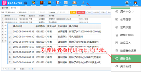 權(quán)限設(shè)置中對(duì)操作員使用操作進(jìn)行日志記錄,讓管理者更方便直觀查詢到操作員的工作效率。